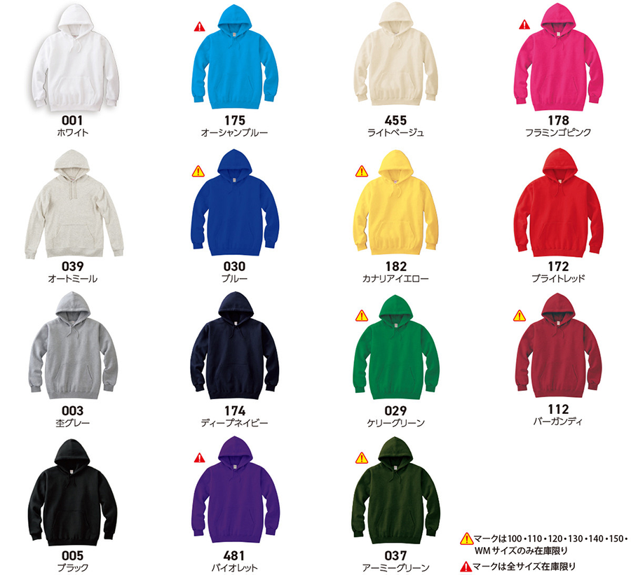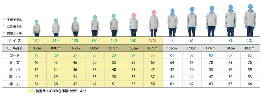 | ※子供用衣類の安全性を図る為、100cm~150cmにはフードのひもはついていません。 ※一部本体カラーは在庫限り | |