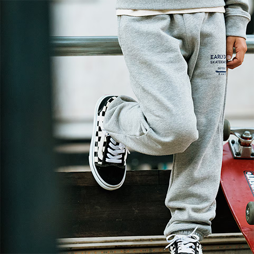 | 製品情報 | 細身のシルエットでほんのり薄手の軽やかな履き心地。 ウエストはスピンドル(紐付き)だから調整がしやすく、裾ゴム仕様で裾を上げてもズレ落ちません。 ルームウェアやダンスウェアとしても人気。 同シリーズのジップパーカー(00217)、フーデットパーカー(00216)、トレーナー(00219)とセットアップ着用もOK。 裏はタオルなようなパイル地になっているので肌ざわりがよく、吸水性もよいのが人気。 |