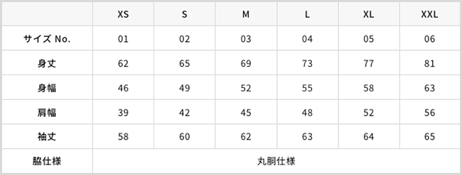 | 素材 | 基本:綿 100% アッシュ:綿 98%、ポリエステル 2% ミックスグレー:綿 90%、ポリエステル 10% |