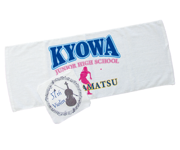| サイズ | フェイスタオル 本体:34×84cm 印刷面:28×38cm スポーツタオル 本体:40×110cm 印刷面:28×38cm マフラータオル 本体::20×110cm 印刷面:17×38cm ハンドタオル 本体:21×21cm 印刷面:17×17cm |